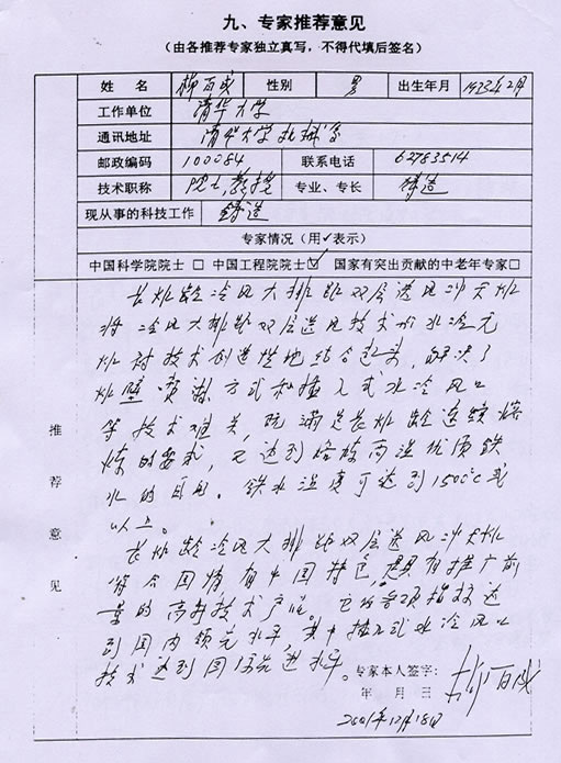 推荐意见-----柳百成